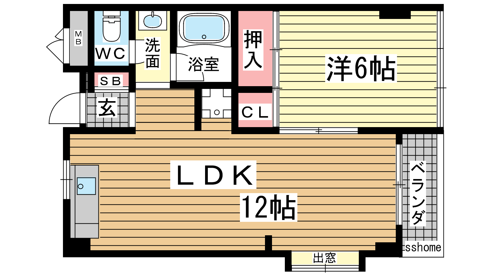 - LDK12帖、洋室6帖