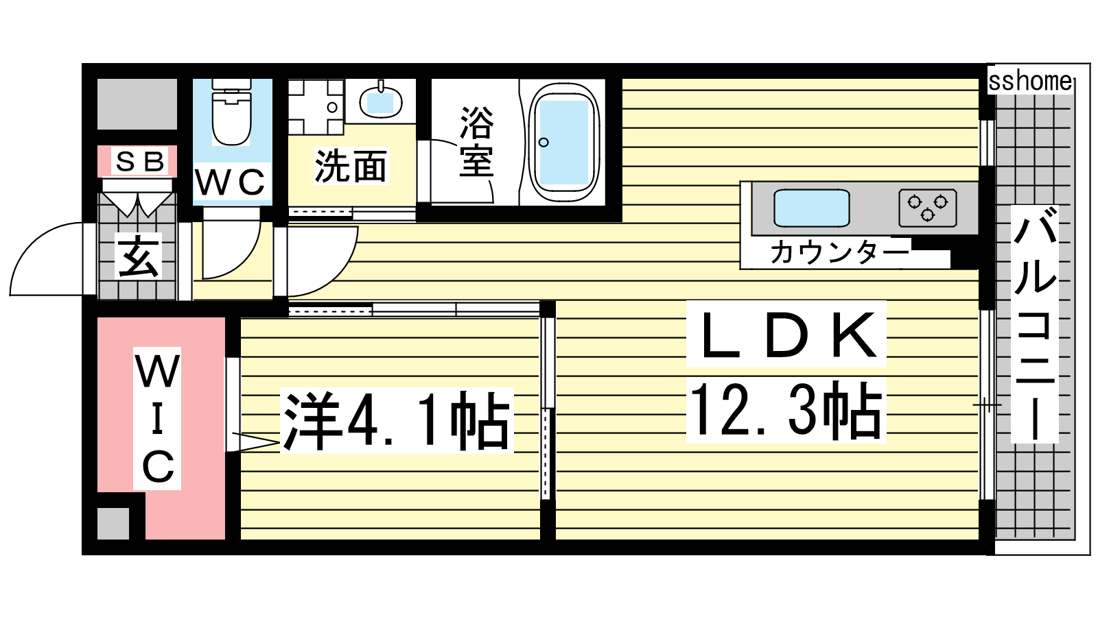 - 洋室4.1帖、LDK12.3帖
