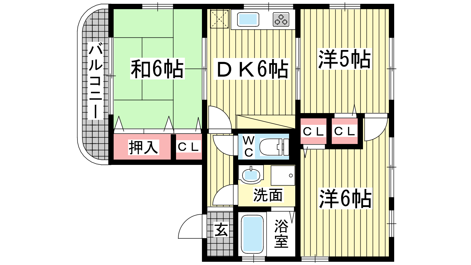 - DK6帖、和室6帖、洋室5帖、洋室6帖