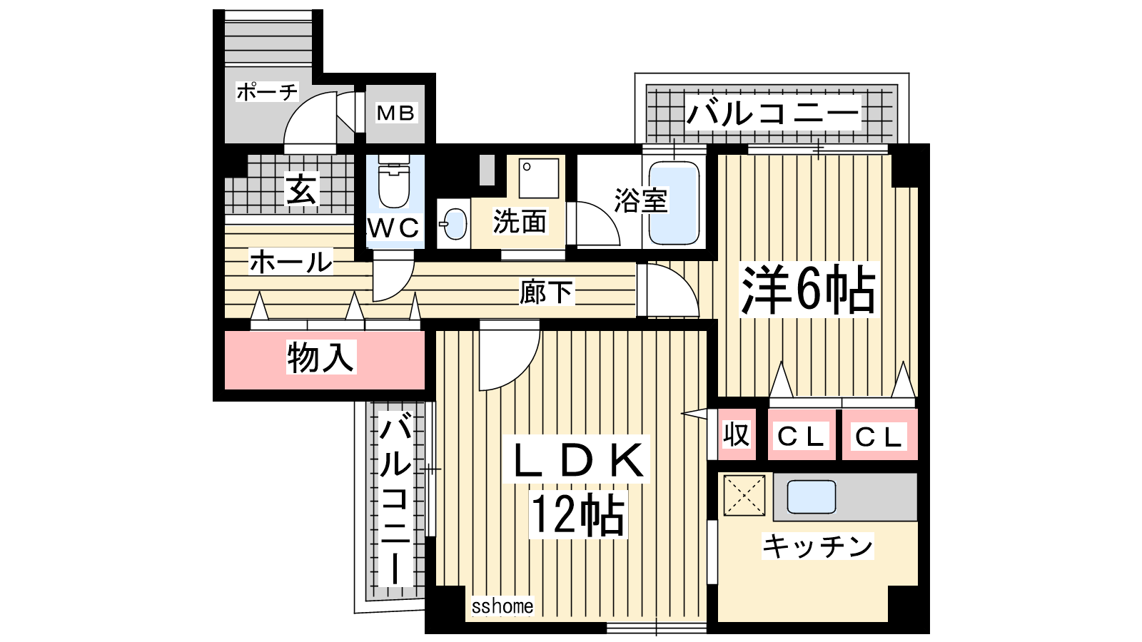 - 洋室6帖、LDK12帖