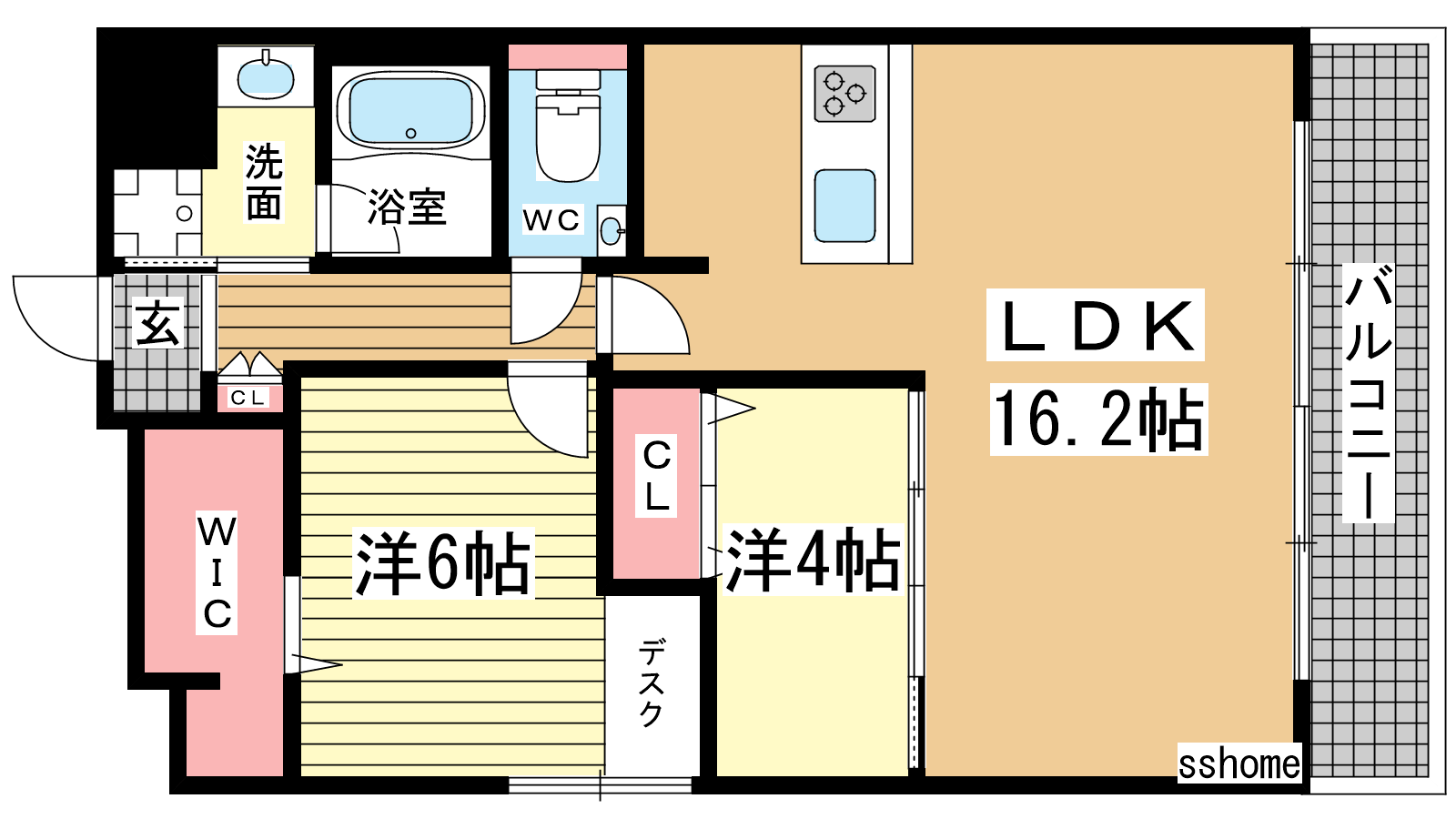 - LDK16.2帖、洋室6帖、洋室4帖