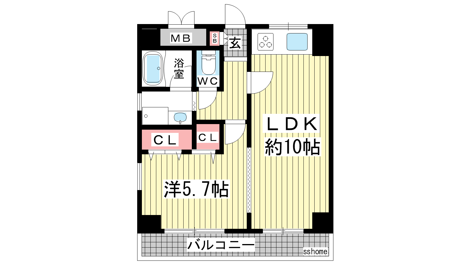 - LDK10帖、洋室5.7帖