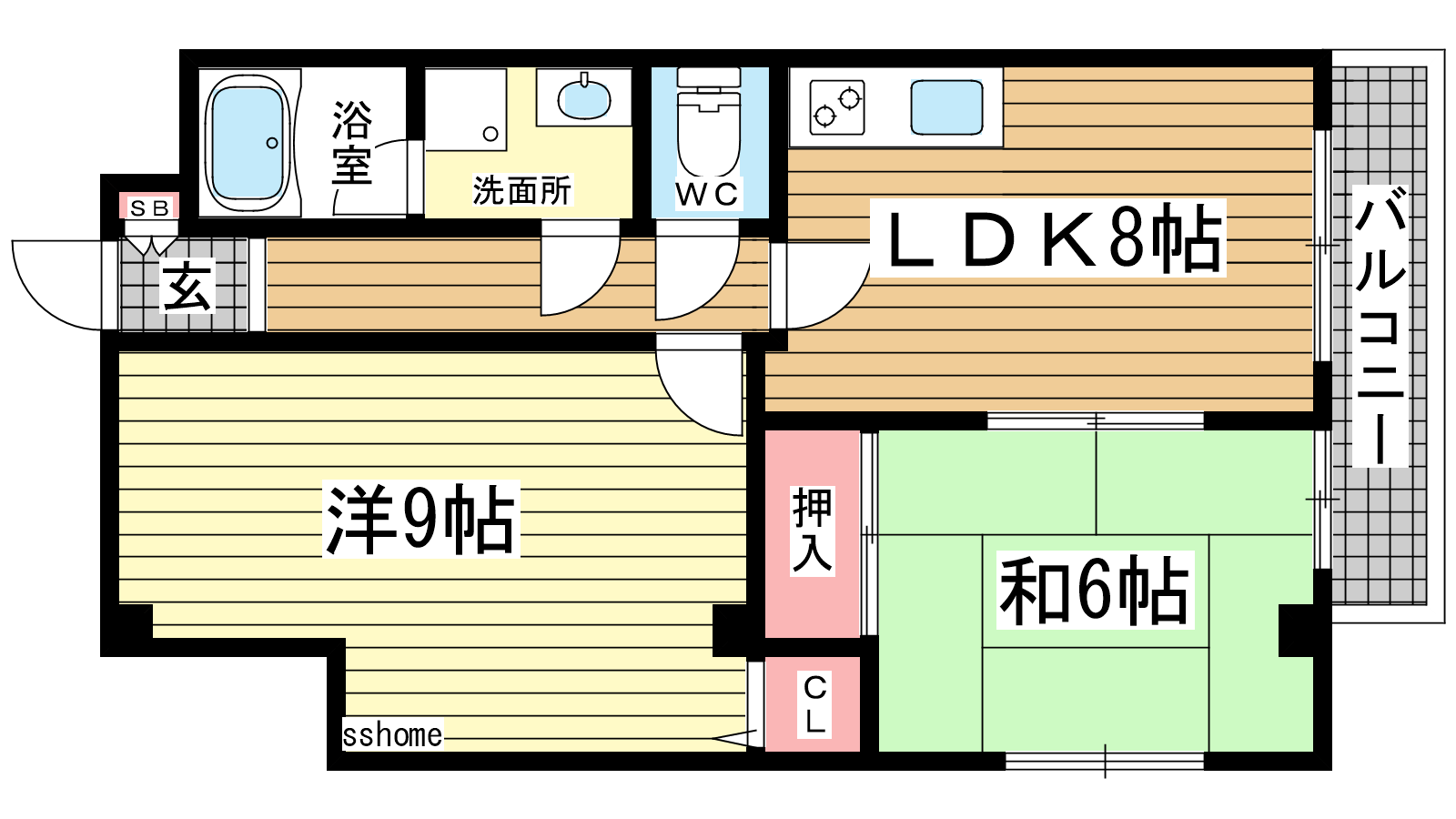- LDK8帖、洋室9帖、和室6帖