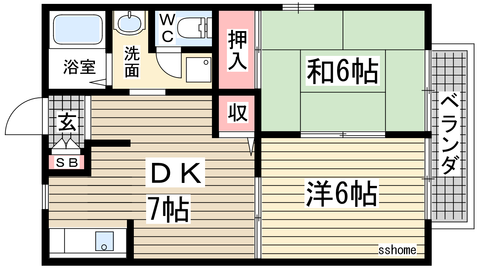 - 洋室6帖、和室6帖、DK7帖