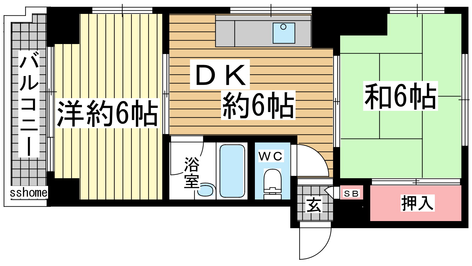 - DK6帖、洋室6帖、和室6帖