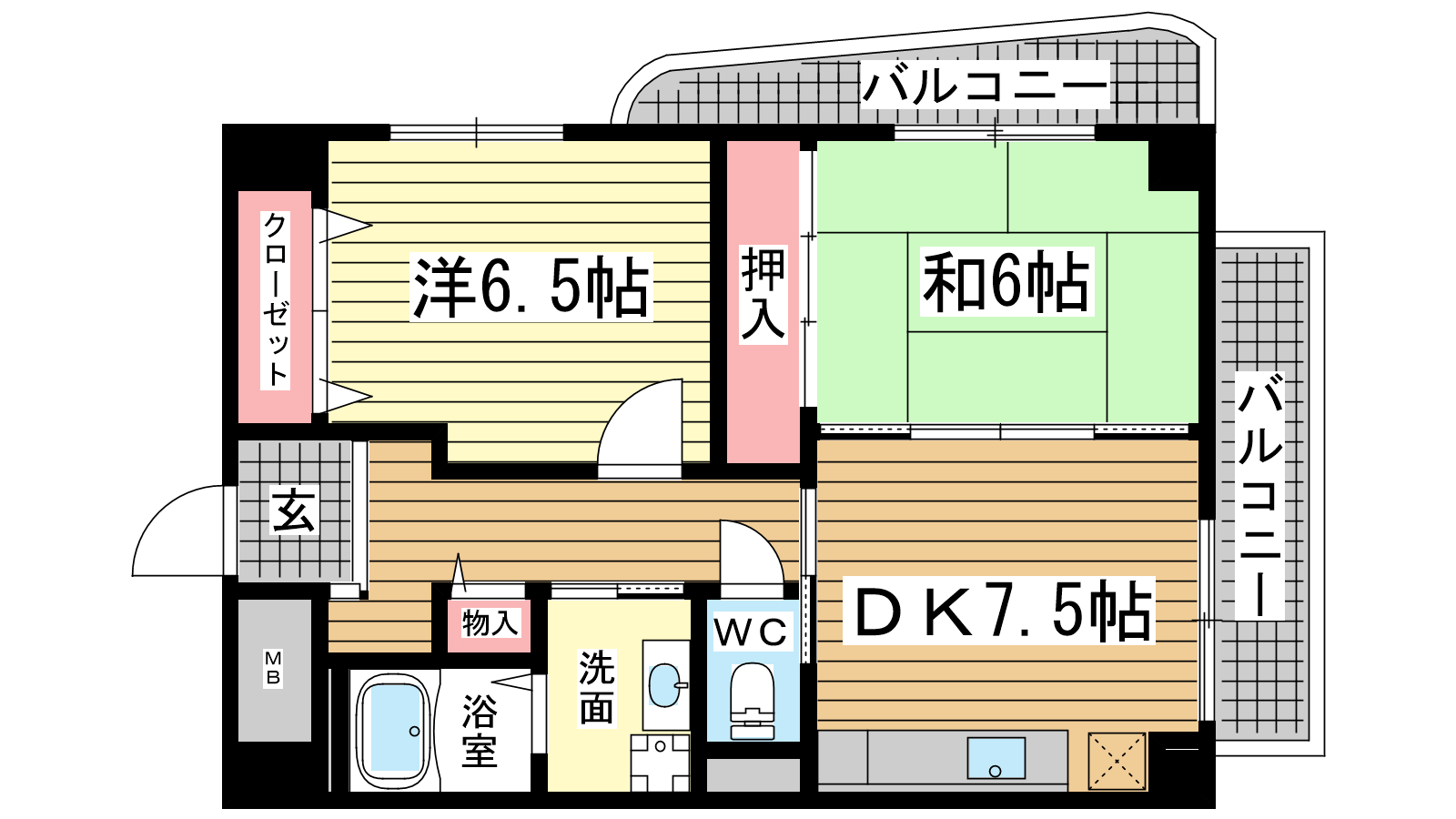 - DK7.5帖、洋室6.5帖、和室6帖