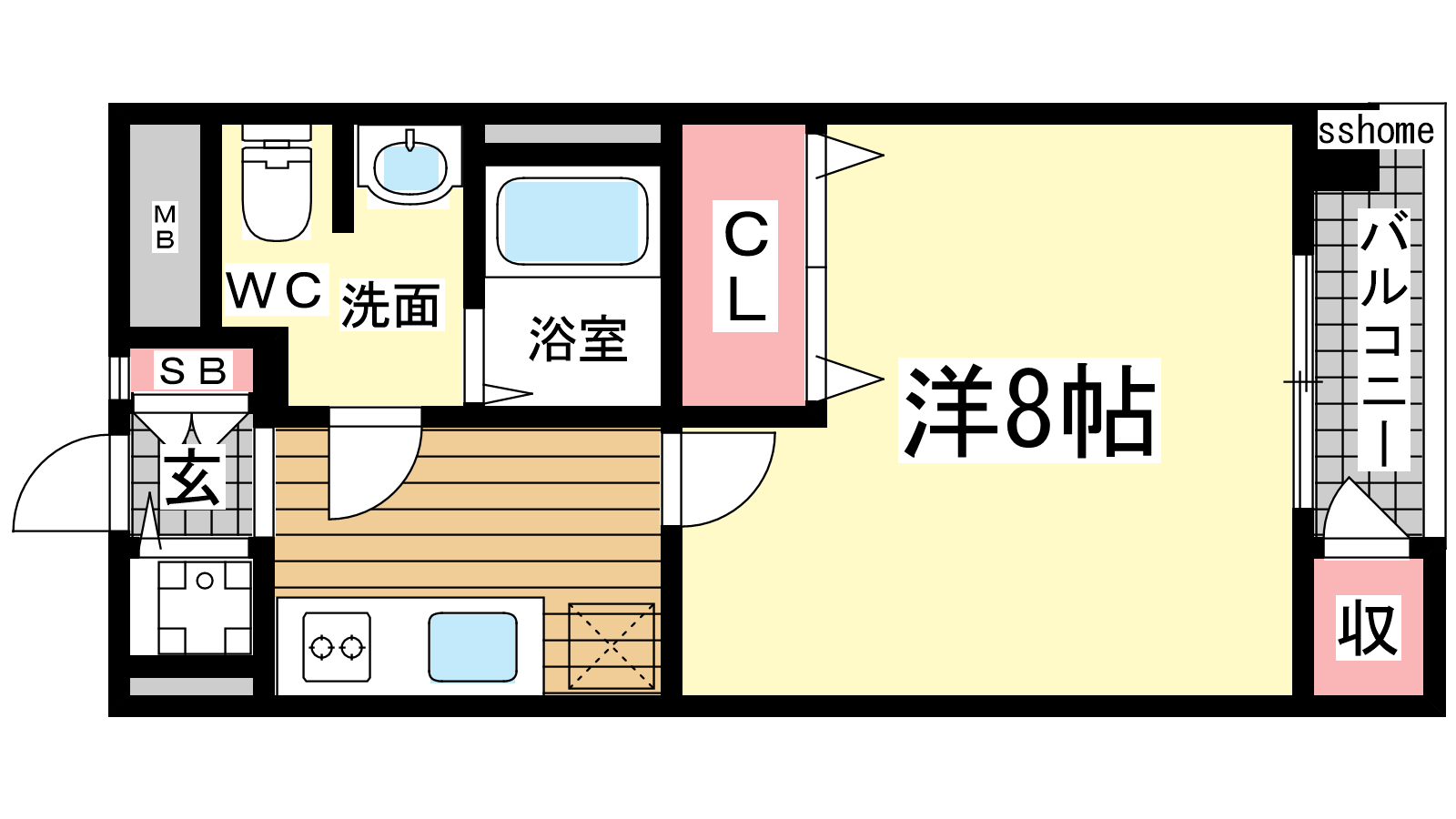 インターネット無料の南向き1Kのお部屋です☆広々洋室♪