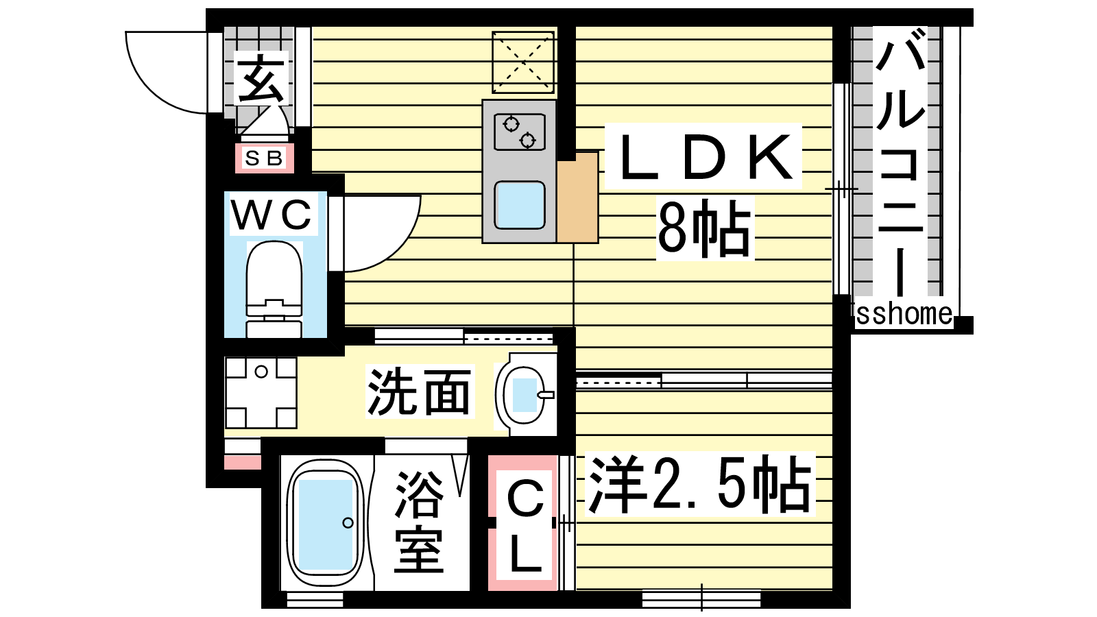 - LDK8帖、洋室2.5帖