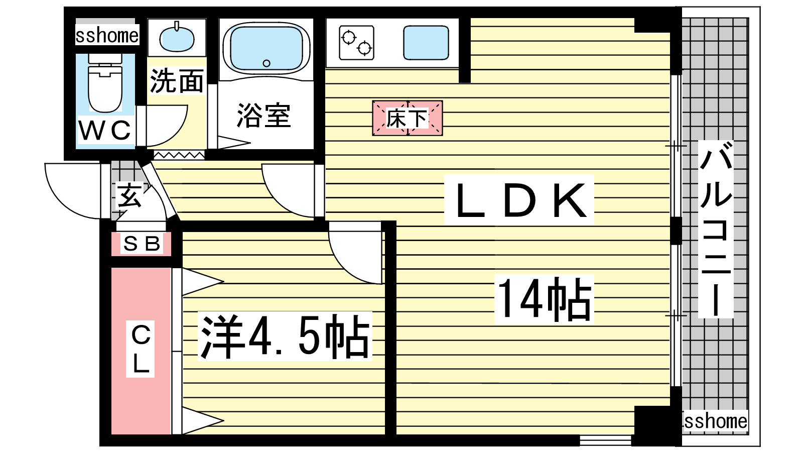 - LDK14帖、洋室4.5帖