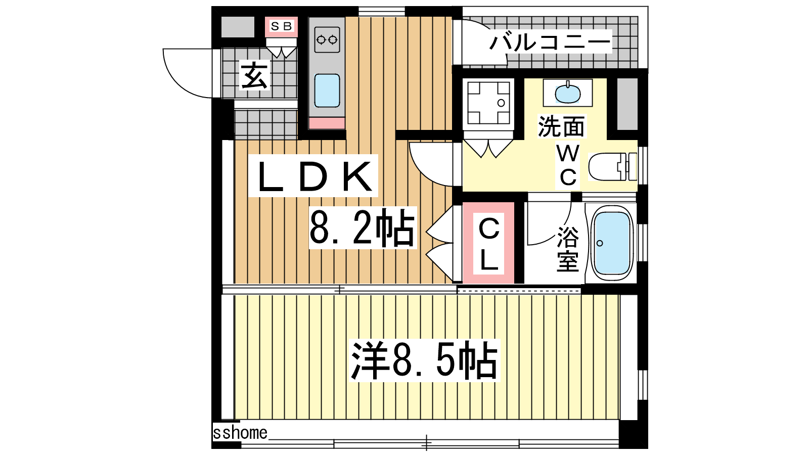 - 洋室8.5帖、LDK8.2帖