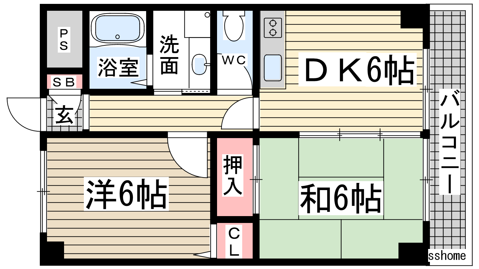 - 洋室6帖、和室6帖、DK6帖
