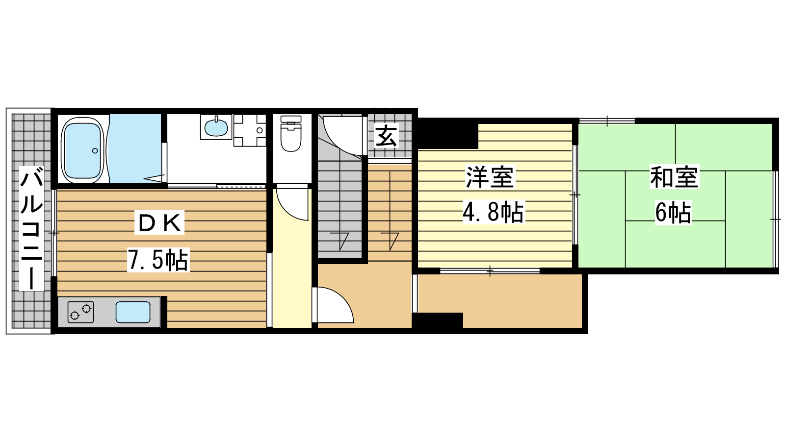 - DK7.5帖、和室6帖、洋室4.8帖