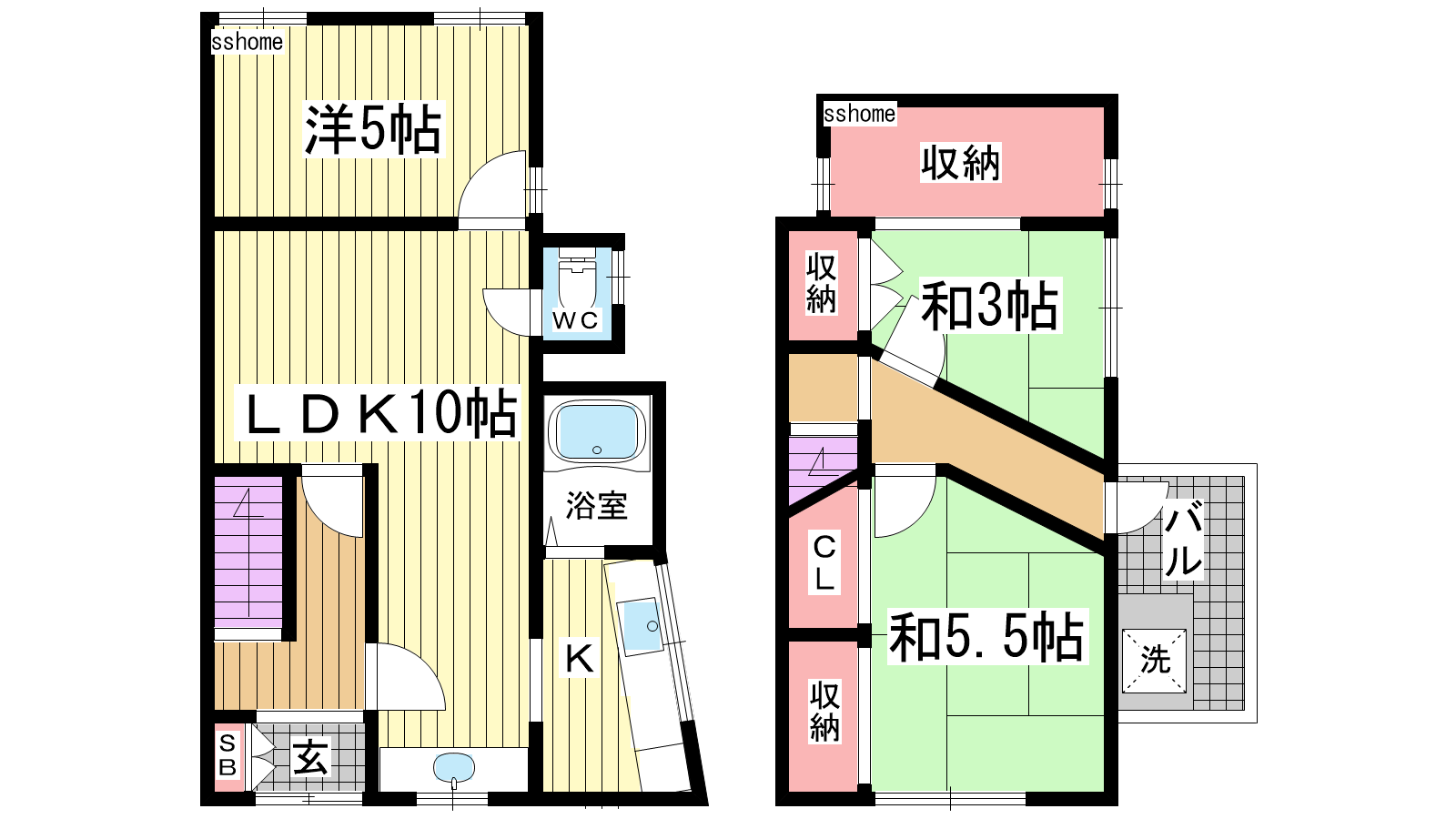 - LDK10帖、洋室5帖、和室5.5帖、和室3帖