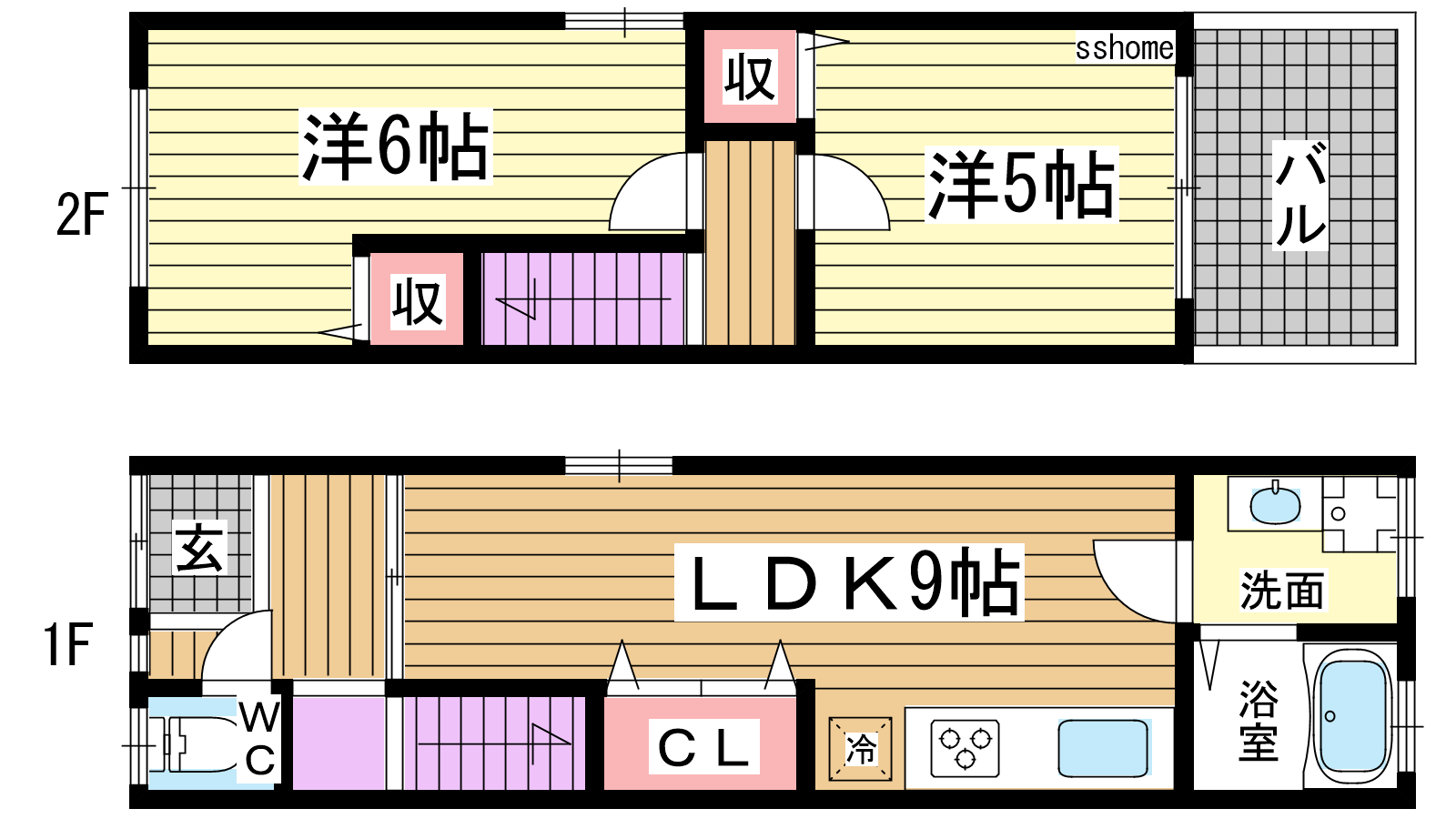 - LDK9帖、洋室6帖、洋室5帖