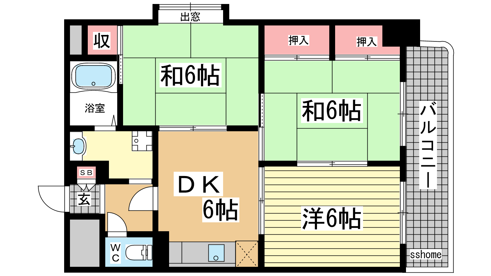 - DK6帖、洋室6帖、和室6帖、和室6帖