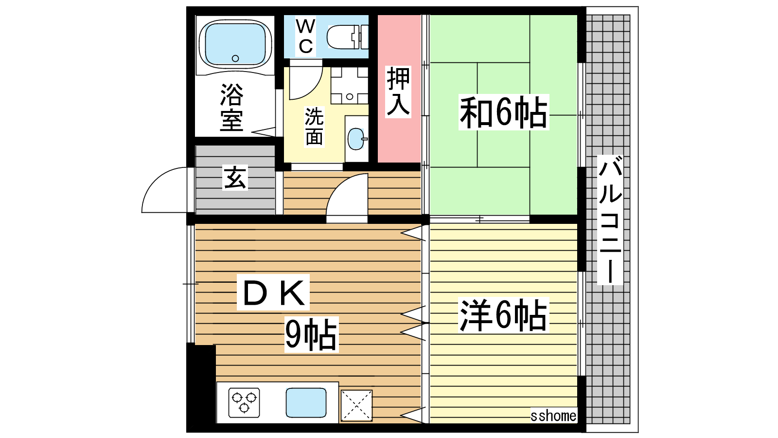 - DK9帖、洋室6帖、和室6帖