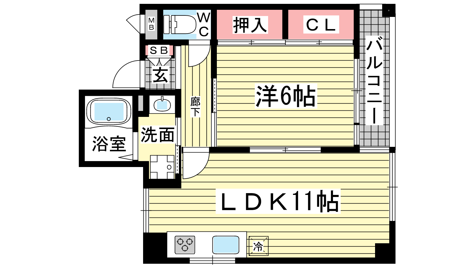 - 洋室6帖、LDK11帖