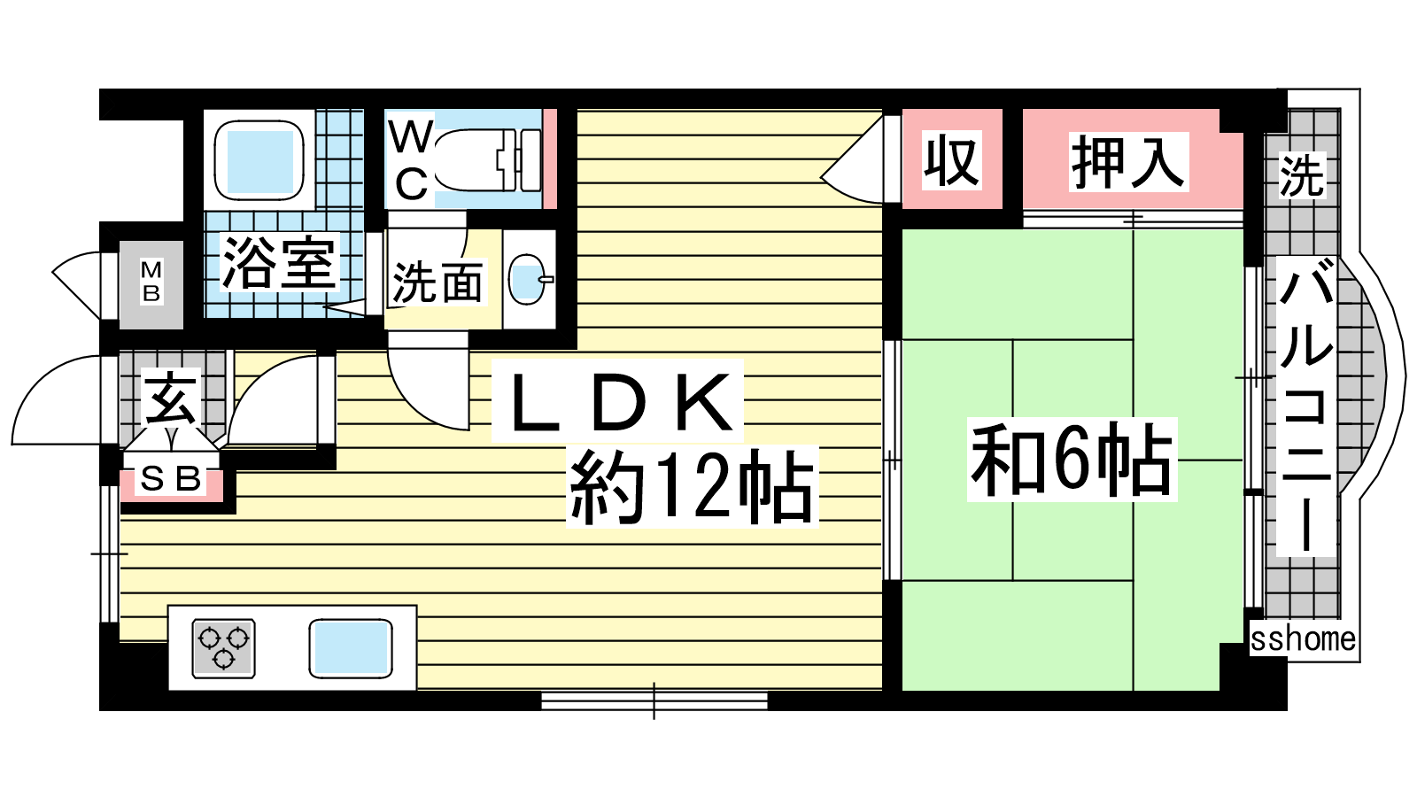 - LDK12帖、和室6帖
