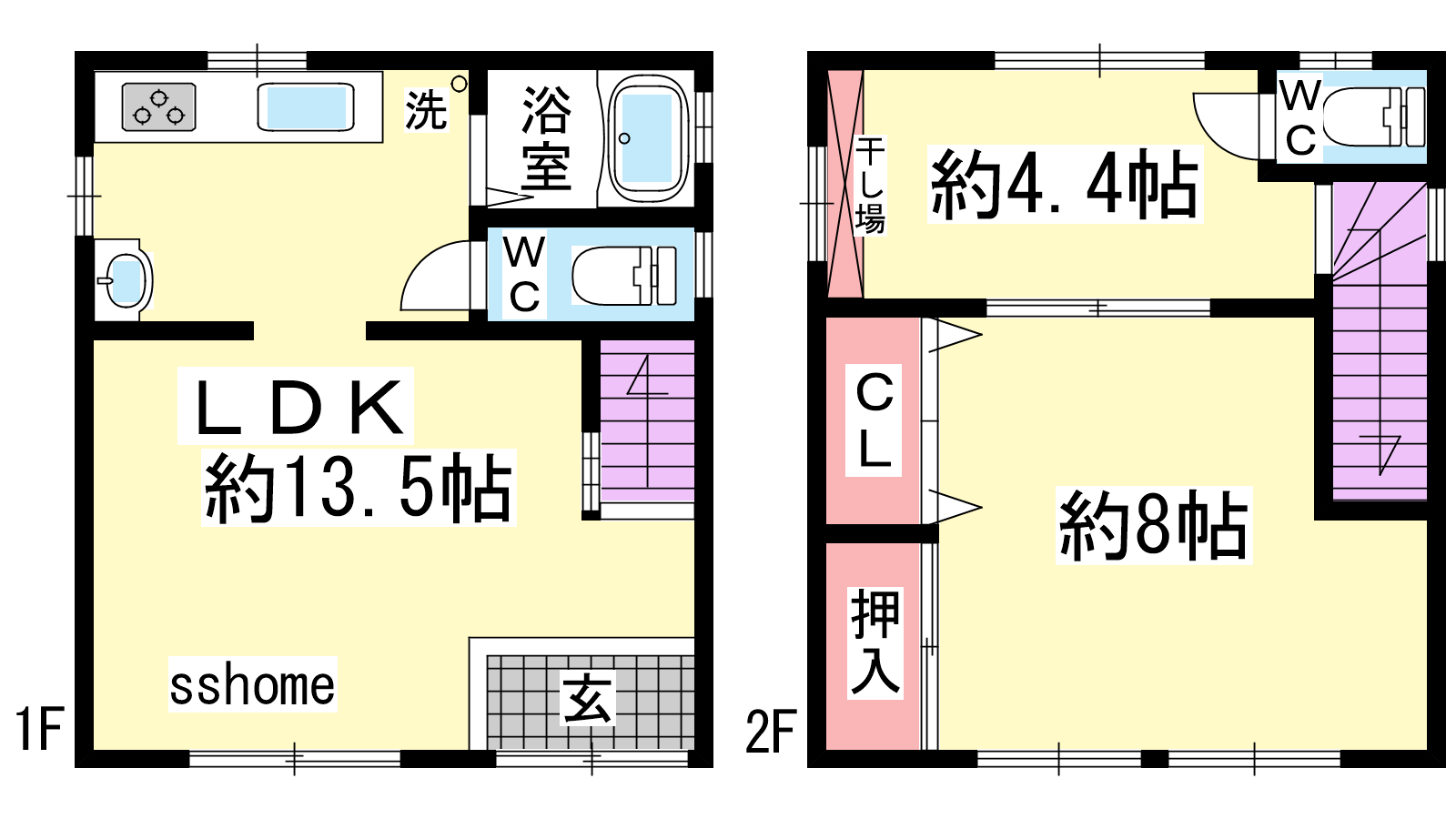 - LDK13.5帖、洋室8帖、洋室4.4帖