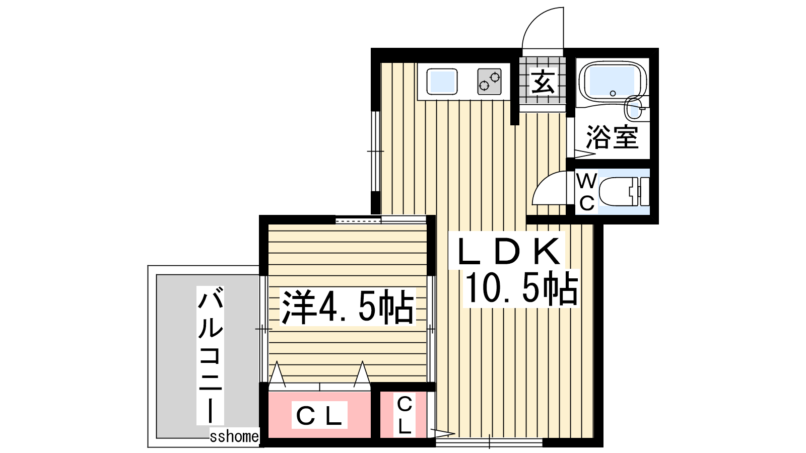 - 洋室4.5帖、LDK10.5帖