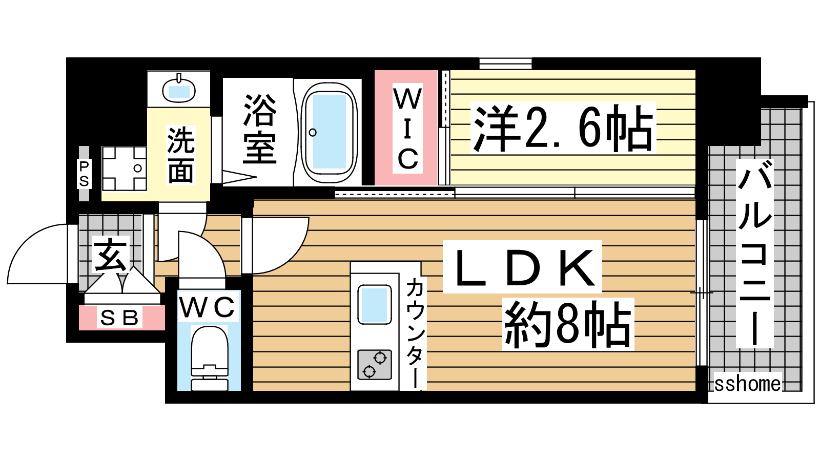 - LDK8帖、洋室2.6帖