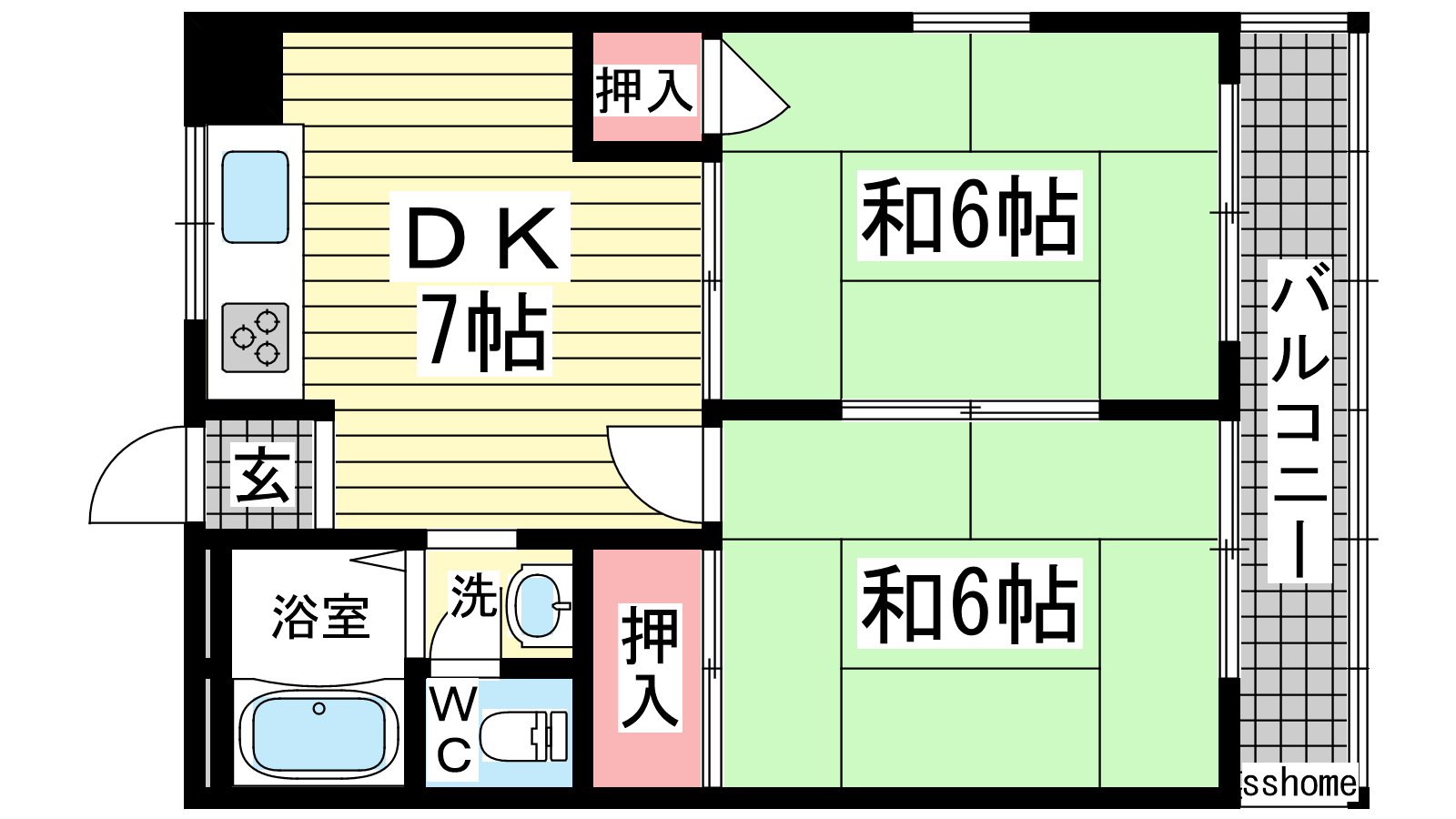 - 和室6帖、和室6帖、DK7帖