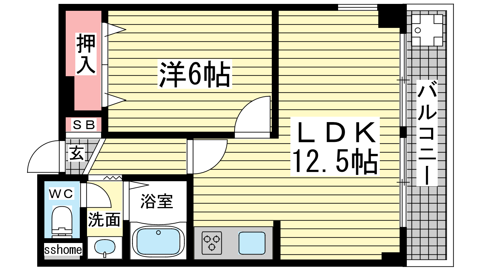 - LDK12.5帖、洋室6帖