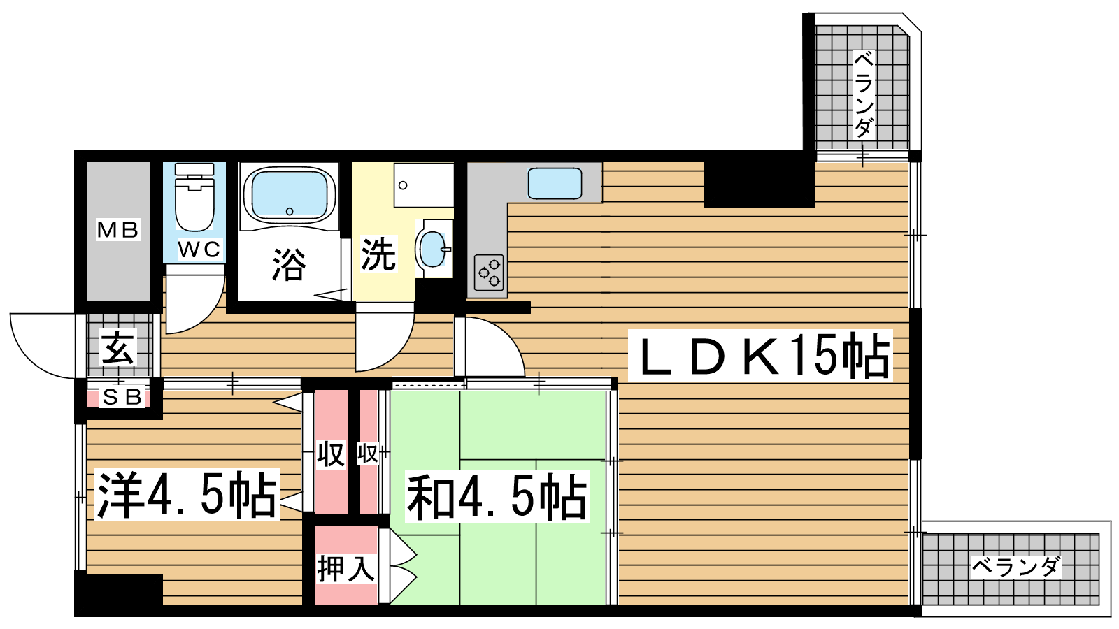 - LDK15帖、洋室4.5帖、和室4.5帖