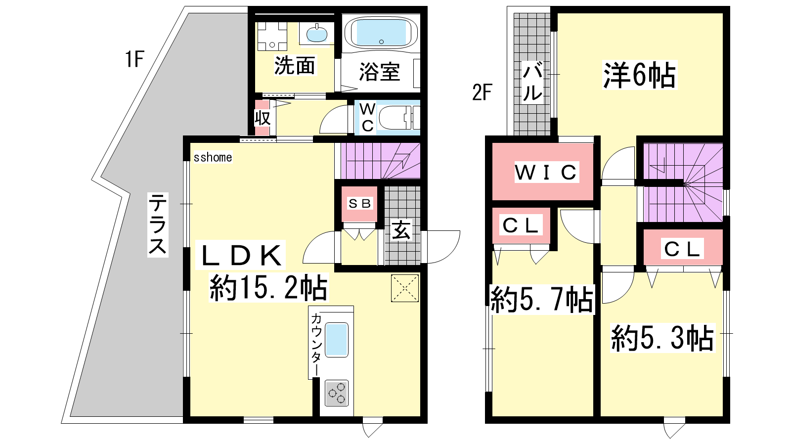 - LDK15.2帖、洋室5.7帖、洋室5.6帖、洋室5.3帖